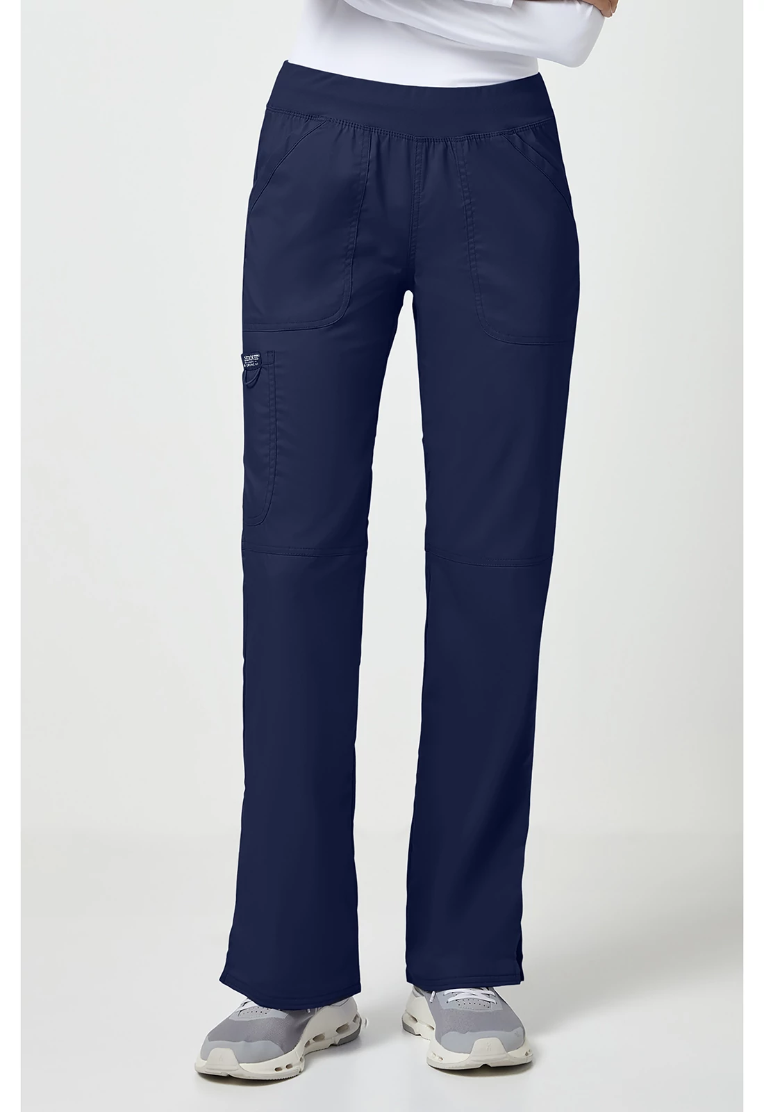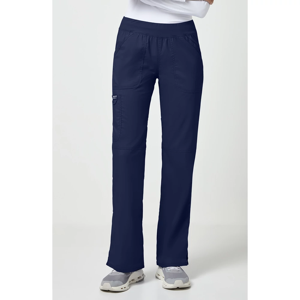 A nadrág rugalmas, kötött derékrésszel rendelkezik, amely belső gumírozással biztosít stabil illeszkedést anélkül, hogy szorítana. A felhúzható (pull-on) kialakítás gyors és egyszerű használatot tesz lehetővé, ami különösen előnyös a pörgős munkanapok során.