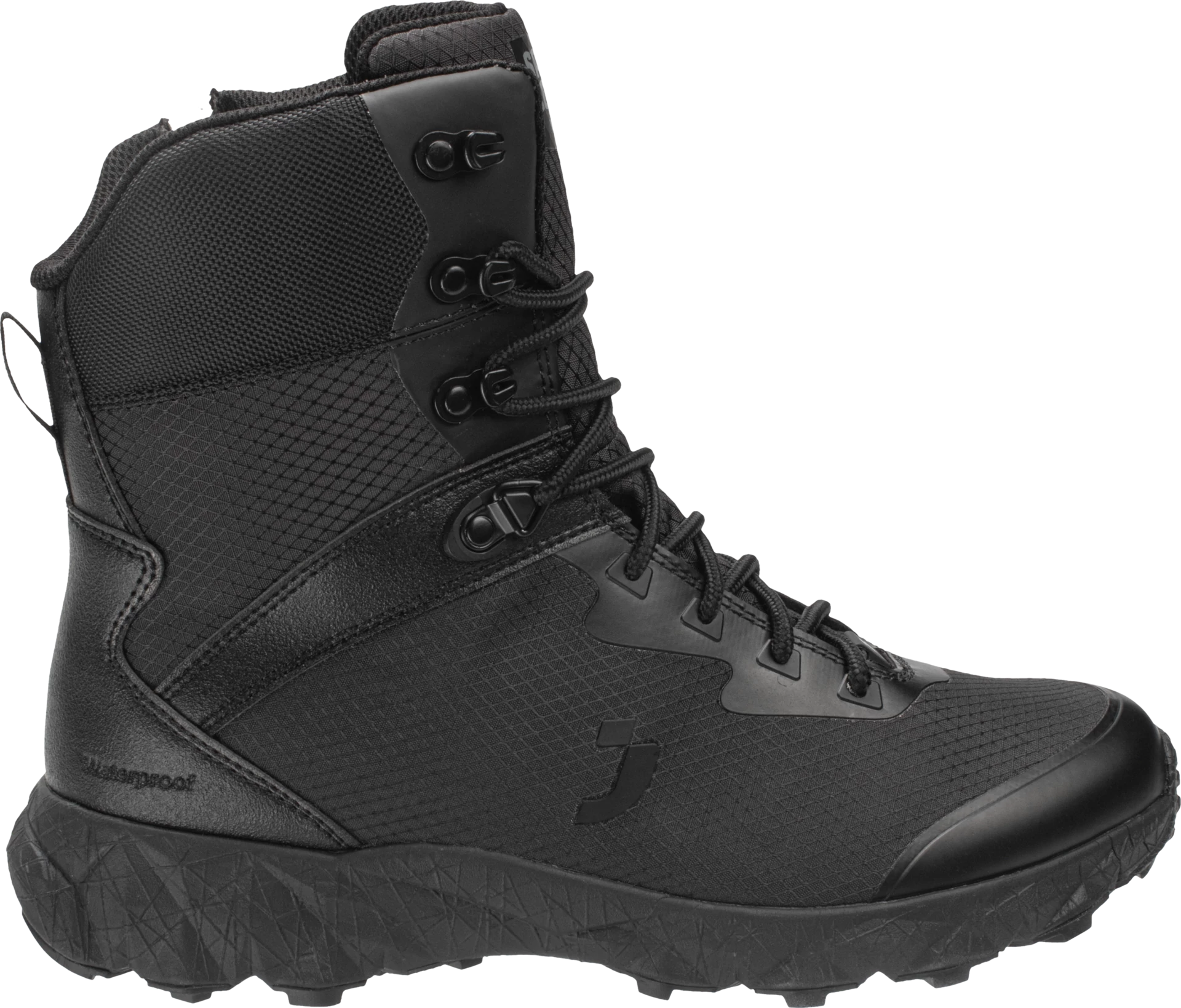 A magas szár extra bokatámaszt nyújt, így növeli a stabilitást és a biztonságot egyenetlen terepen vagy intenzív mozgás során. A sportos, fekete dizájn pedig lehetővé teszi, hogy a bakancs ne csak funkcionális, hanem stílusos választás is legyen.