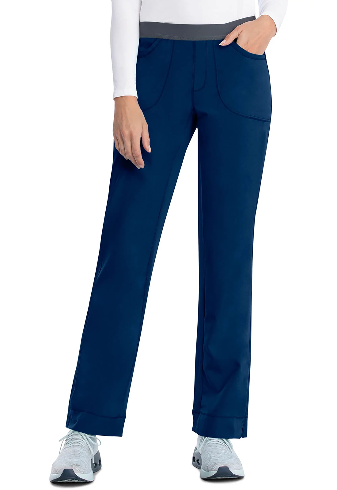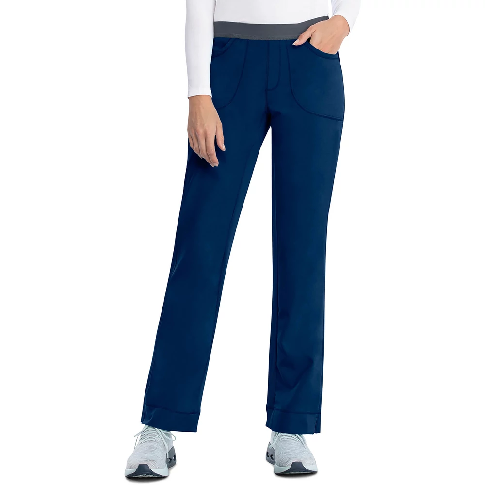 Modern szabású, alacsony derekú, karcsúsított nadrág puha, rugalmas derékkal, elöl ívelt zsebekkel és álsliccel. Hátsó vállrész és belső varrásbetét található rugalmas, bordázott kötésű anyagból a nagyobb kényelem érdekében, két hátsó zsebbel és oldalsó szellőzőnyílásokkal. Végig varrásokkal díszítve. Belső varráshossz: 31". A kényelmes, rugalmas puplin anyag és a szuper rugalmas bordázott kötésű anyag tökéletes kombináció az egészségügyi szakemberek számára.