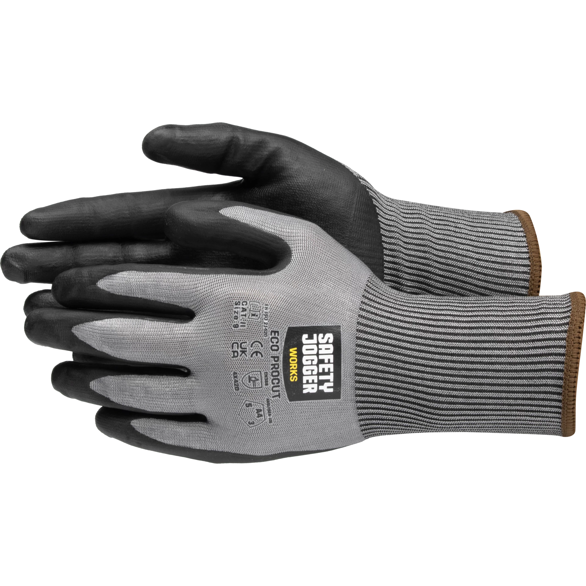 A SAFETY JOGGER ECO PROCUT egy prémium vágásálló kesztyű, amely kimagasló védelmet és kényelmet kínál minden olyan munkakörnyezetben, ahol az éles szerszámok vagy anyagok veszélyt jelenthetnek a kézre. A kesztyű anyaga 18 gauge vastagságú, újrahasznosított poliammidból készült vágásálló fonal, amely biztosítja az EN 388 szerinti vágásállósági szint 5-ös védelmet, így megbízhatóan ellenáll a vágásoknak és sérüléseknek.