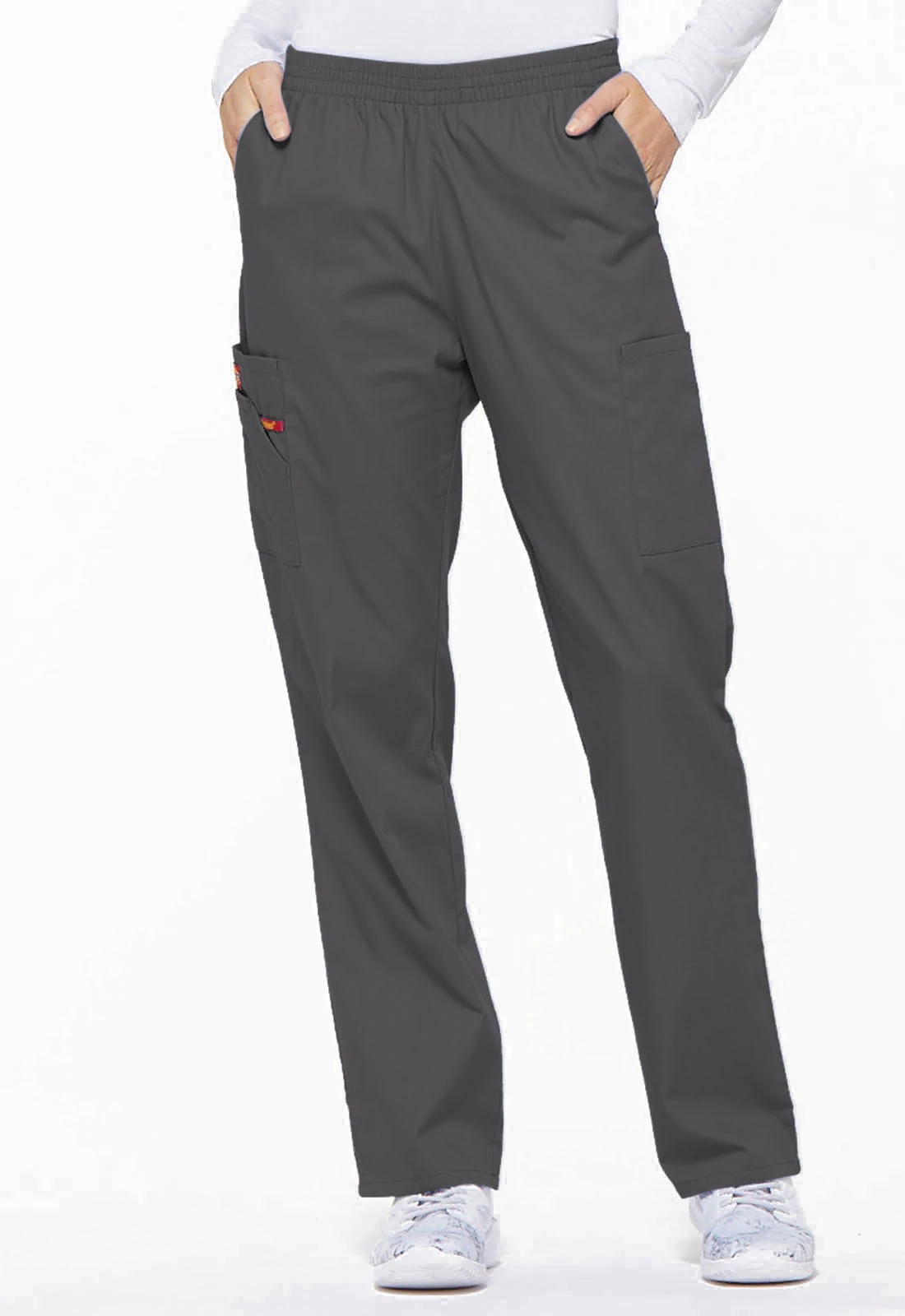 A Modern Classic szabású, derékig érő, keskenyített szárú nadrág, gumis derékszíjjal rendelkezik. A derékszíj belső felén Dickies logós twill szalag, a jobb oldali cargo zsebben pedig egy műszerhurok található. A nadrágon szintén megtalálhatóak elülső szögletes zsebek és cargo zsebek, amihez egy sztreccses piros kötött belső zseb tartozik.