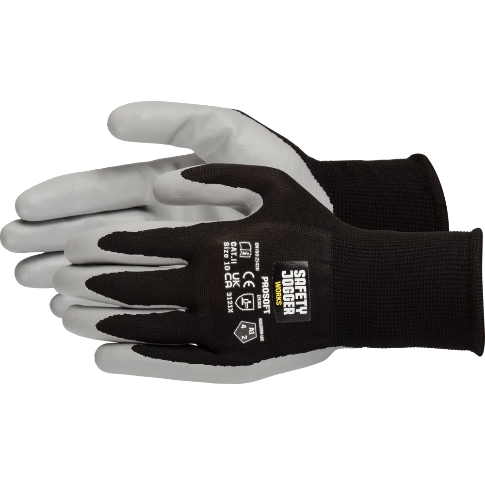 A Safety Jogger PROSOFT professzionális, sokoldalú munkavédelmi kesztyű, amelyet kifejezetten könnyű és precíz feladatokhoz terveztek, ahol a kényelem, a kézügyesség és az érzékenység kulcsfontosságú.